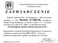 Świadectwo ukończenia szkolenia dotyczącego stosowania preparatów I i II kl. toksyczności |