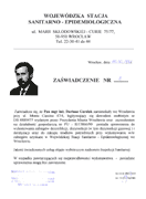 | Zaświadczenie ukończenia przeszkolenia w Wojewódzkiej Stacji Sanitarno Epidemiologicznej |