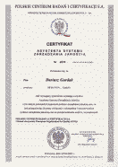 | Certyfikat uczestnictwa w specjalistycznym szkoleniu w zakresie wdrażania systemu HACCP |